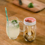 Each jar is filled with Dehydrated Fruit, Herbs and Non-GMO Vegan Sugar. No Preservatives, No Artificial Colors or Flavors.
