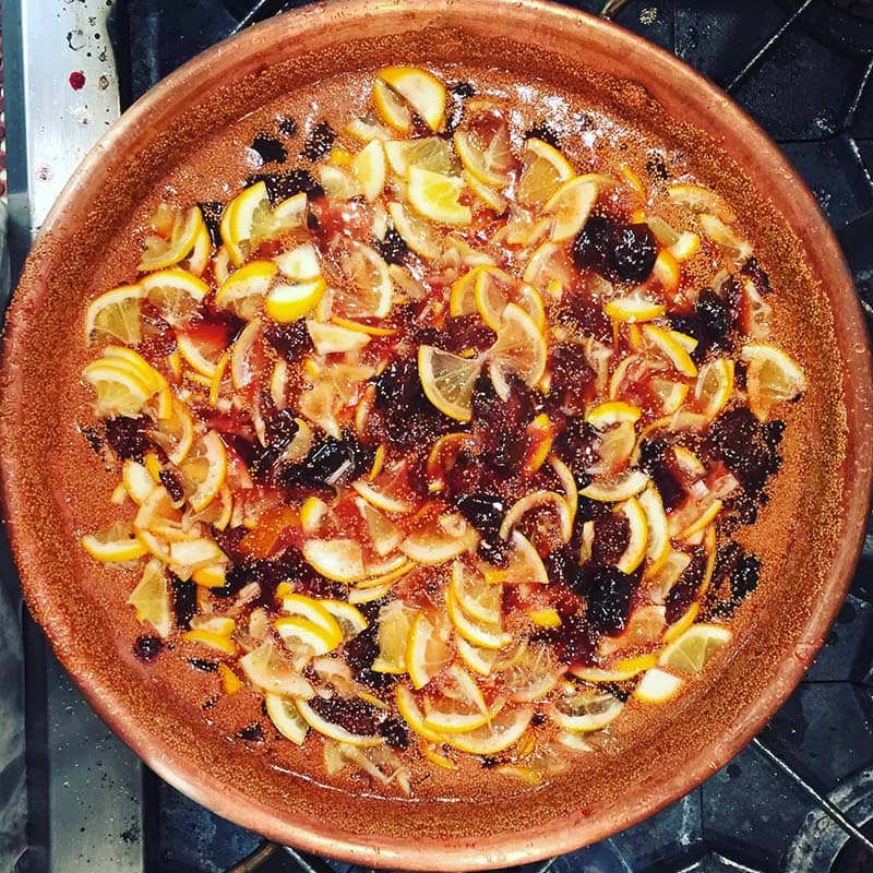 Fresh Black Mission Figs are slightly roasted with honey, then slowly cooked with sliced Meyer Lemons. We add a touch of balsamic vinegar and sea salt to give it a full bodied flavor.