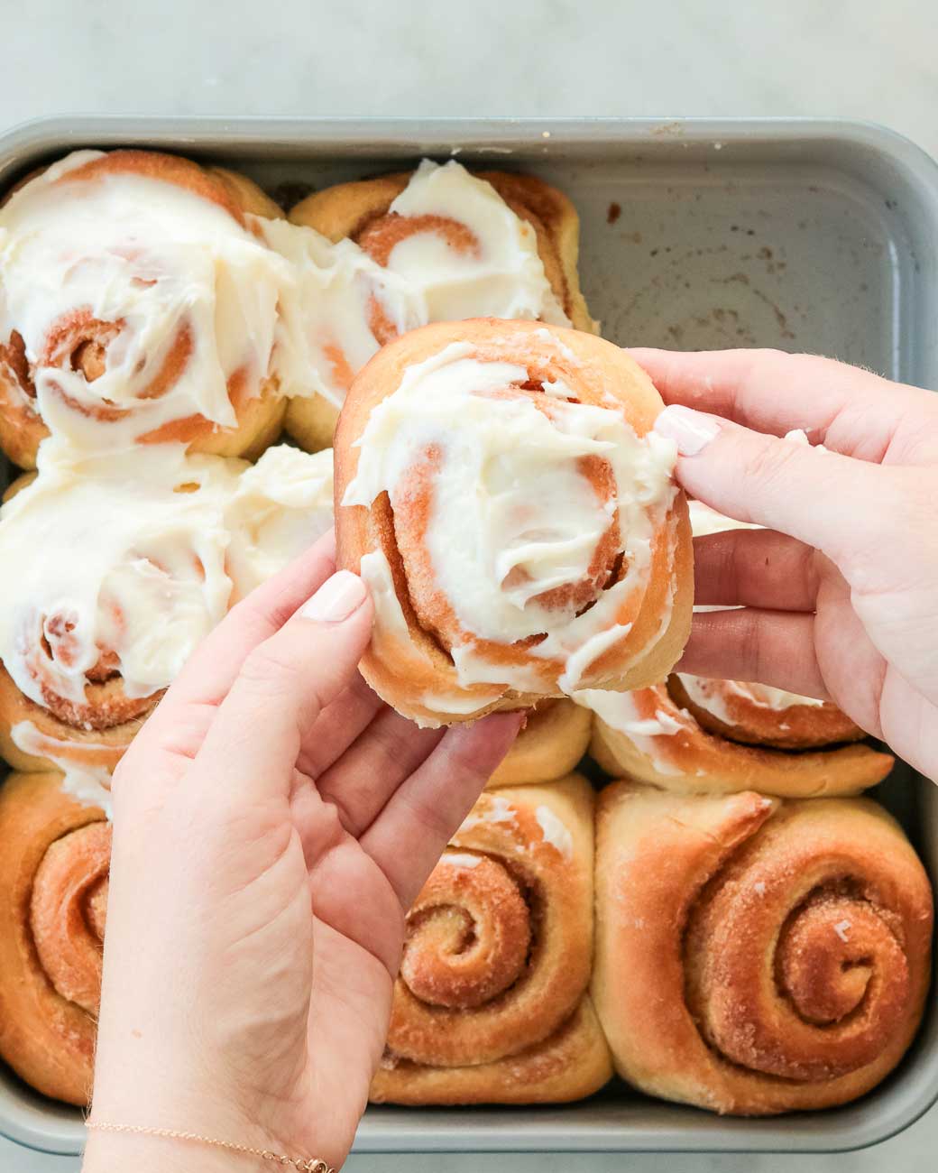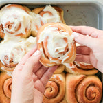 Bake a homemade batch of the most deliciously sticky cinnamon-swirled delights. Soft, fluffy dough rolled into perfect spirals, laced with irresistibly rich cinnamon sugar, melts into a luscious swirl of absolute goodness as they bake. The warm, freshly baked rolls are then smothered in a generous layer of velvety icing, creating a perfect blend of cinnamon-spiced dough and decadent frosting.