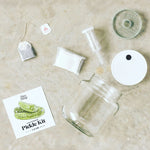 Kit Includes: ½ Gallon Glass Fermenting Jar, Glass Fermentation Weight, Lid with Airlock, Kosher Salt, Black Tea Bag