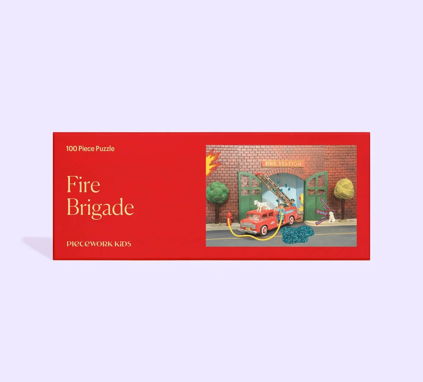 Beep beep! The world’s cutest fire brigade is coming to the rescue. This 100-piece kids puzzle features tin trucks, yellow boots, glitter art, and two brave Dalmations. Playing with fire has never been so wholesome.