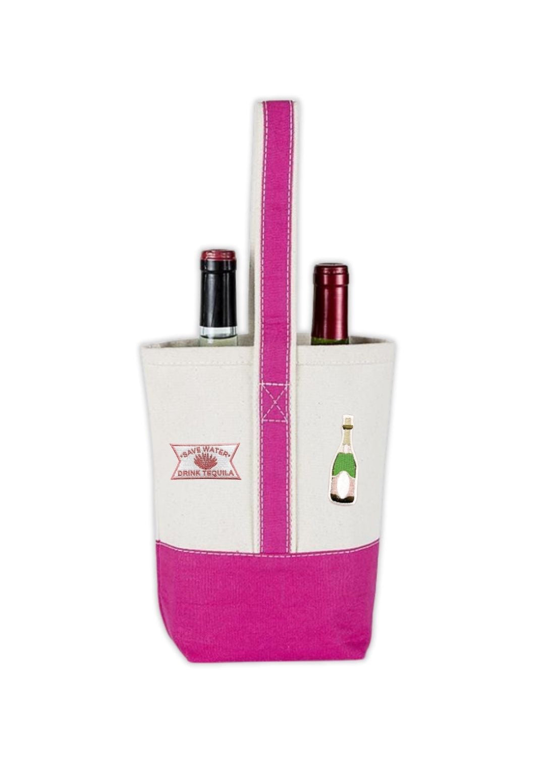 Pink Double Wine Bottle Canvas Tote Bag with Drink Themed Patches